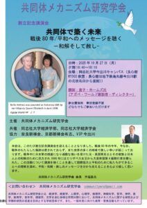 2025年10月26日(日)と10月27日(月)に共同体メカニズム研究学会創立記念講演会を開催します。どちらの講演会も事前登録無しで、どなたでも参加できます。会場と26日は2時間(質疑応答の時間を含む)と27日は1時間3 […]